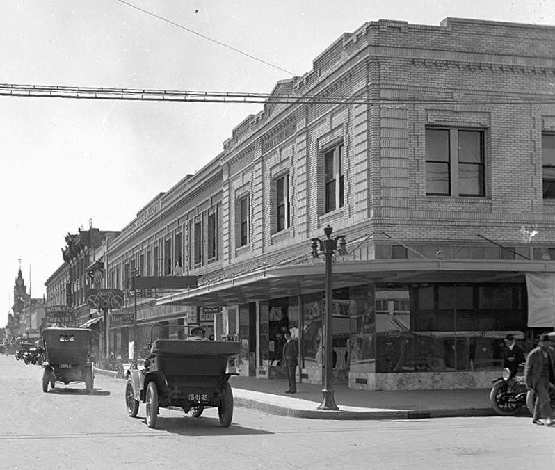 Until 1911, the intersection of 10th and J was mostly residential and the hub of downtown Modesto was the intersection of 10th and H. Charles Murray and W. A. Jones planned to change that by developing the four corners of 10th and J into “The New Center” of Modesto. This is the second of four buildings they helped build on the corners of the intersection.